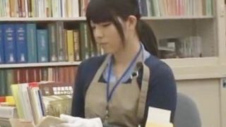 《図書館のエロ司書》「やばいっ!もう我慢できないぃ!」静かな本の海でスリムで強引に触られ、痙攣しながらイキまくるお姉さんw